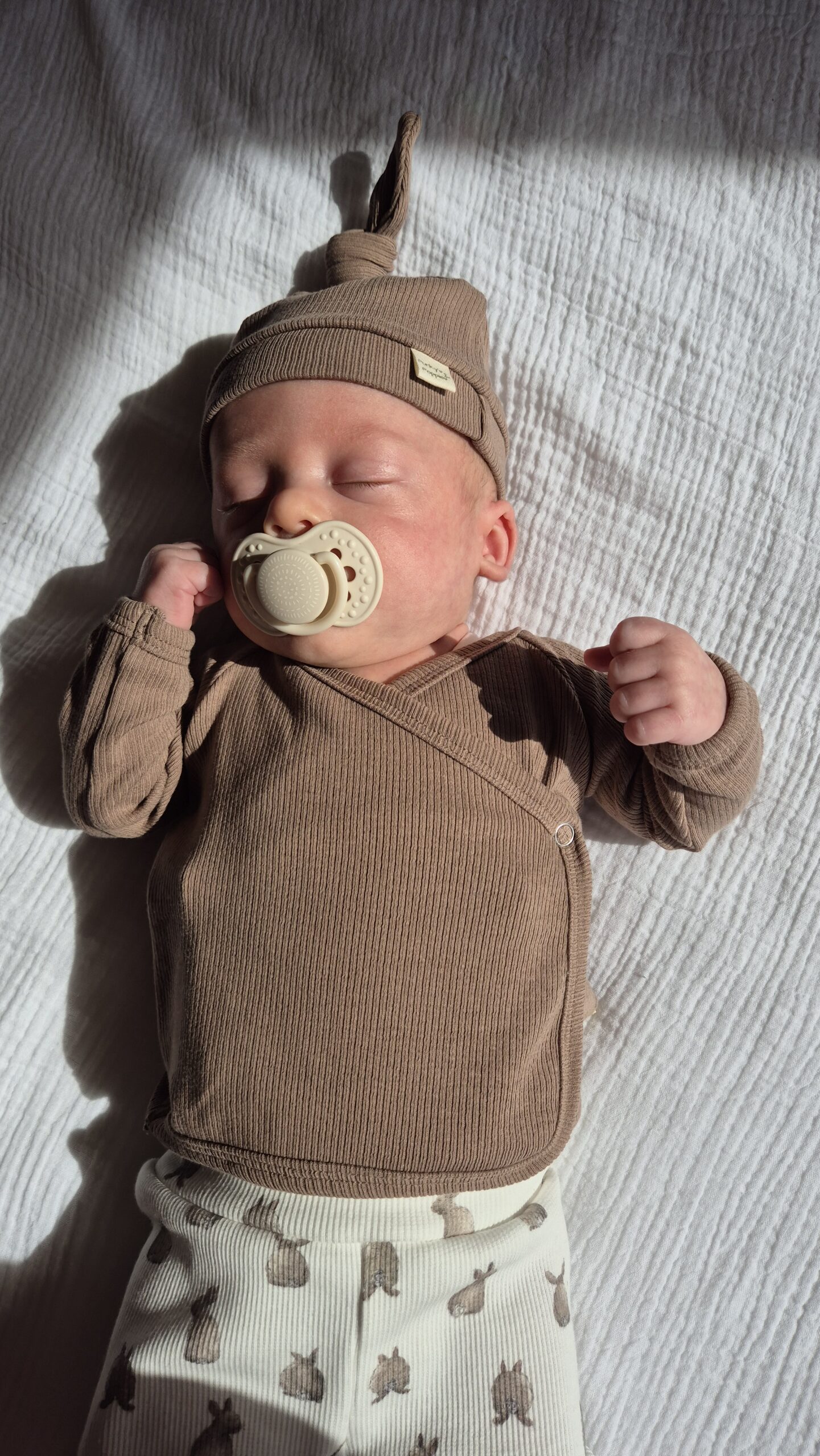 Overslagtruitjes zijn heel fijn om als eerste kleertjes in huis te hebben, doordat er niets over het hoofdje hoeft kun je je kindje makkelijk aankleden. Comfort en eenvoud staan vooraan. Deze zachte ribstof van katoen is veilig voor de huid van je pasgeboren baby. De prachtige taupe kleur is genderneutraal en past vaak heel goed als je kindje een lichte huid heeft. Mooi te combineren met de bunny bum broekjes of juist ook het taupe kleurige broekje voor een effen outfit.